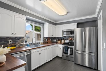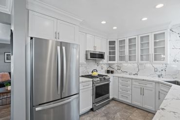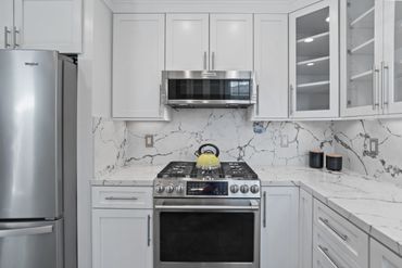 -Kitchen has GE Stainless Steel Appliances, Gas Stove/Oven with Italian Quartz Counters and Beautiful Cabinets
